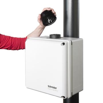 Schréder ITERRA bietet hervorragende Flexibilität. Ein Schaltschrank (ITERRA BASICBOX) fungiert als Anschluss-Hub und gruppiert die Steuerbusverkabelung. Seine NEMA-Buchse beherbergt einen Steuerknoten (ITERRA NEMA NODE), der in einem Mesh-Netzwerk ein kabelgebundenes Signal in eine BLE-Funkkommunikation umwandelt. Mit dieser Konfiguration können bis zu 8 DALI-Treiber separat angesteuert werden.