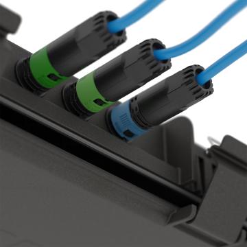 TFLEX GEN2 COMBI bietet werkzeuglose, integrierte Steckverbinder, die mit flammhemmenden Kabeln in kundenspezifischen Längen kompatibel sind. Diese Eigenschaft macht die Installation bemerkenswert einfach und schnell und reduziert Betriebskosten und Wartungszeiten erheblich.