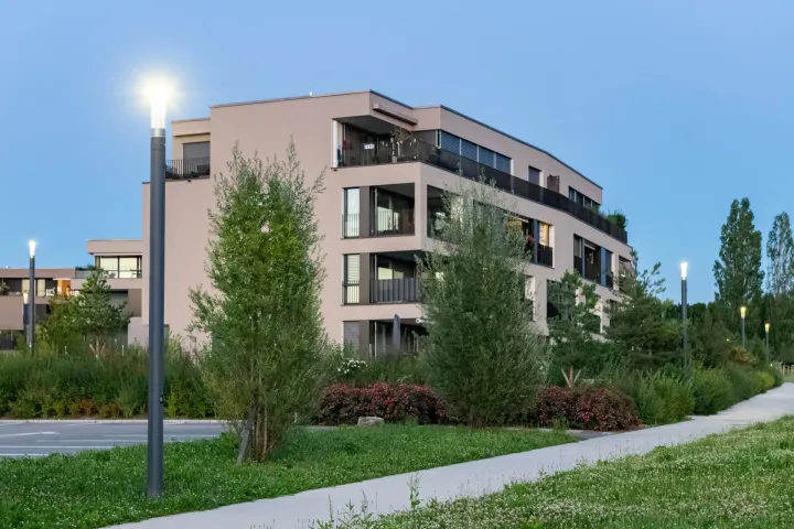 Der Lebensraum in Portes du Lac ist nicht nur komfortabel, sondern auch intelligent. Alle Appartemente sind mit dem eSMART-System ausgestattet, einem Dashboard, das alle Funktionen beinhaltet, die für das Wohlbefinden der Bewohner nützlich sind. Dieses innovative Viertel musste daher eine intelligente, moderne und nachhaltige Aussenbeleuchtung erhalten. Der für das Projekt verantwortliche Architekt entschied sich daher für die Shuffle aufgrund ihres Designs, ihrer Fähigkeiten und der Beleuchtung mit ihrem intelligenten Managementsystem.