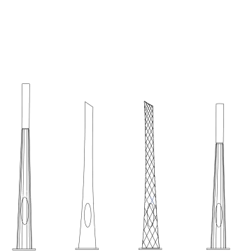 La gamme de mâts décoratifs THYLIA se compose d'une base disponible en 4 finitions différentes, associée à des tiges droites ou courbes.