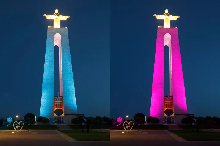 Per dare il benvenuto durante la Giornata Mondiale della Gioventù del 2023, che riunirà circa 600 giovani a Lisbona, la diocesi locale ha deciso di potenziare l'illuminazione notturna della statua.